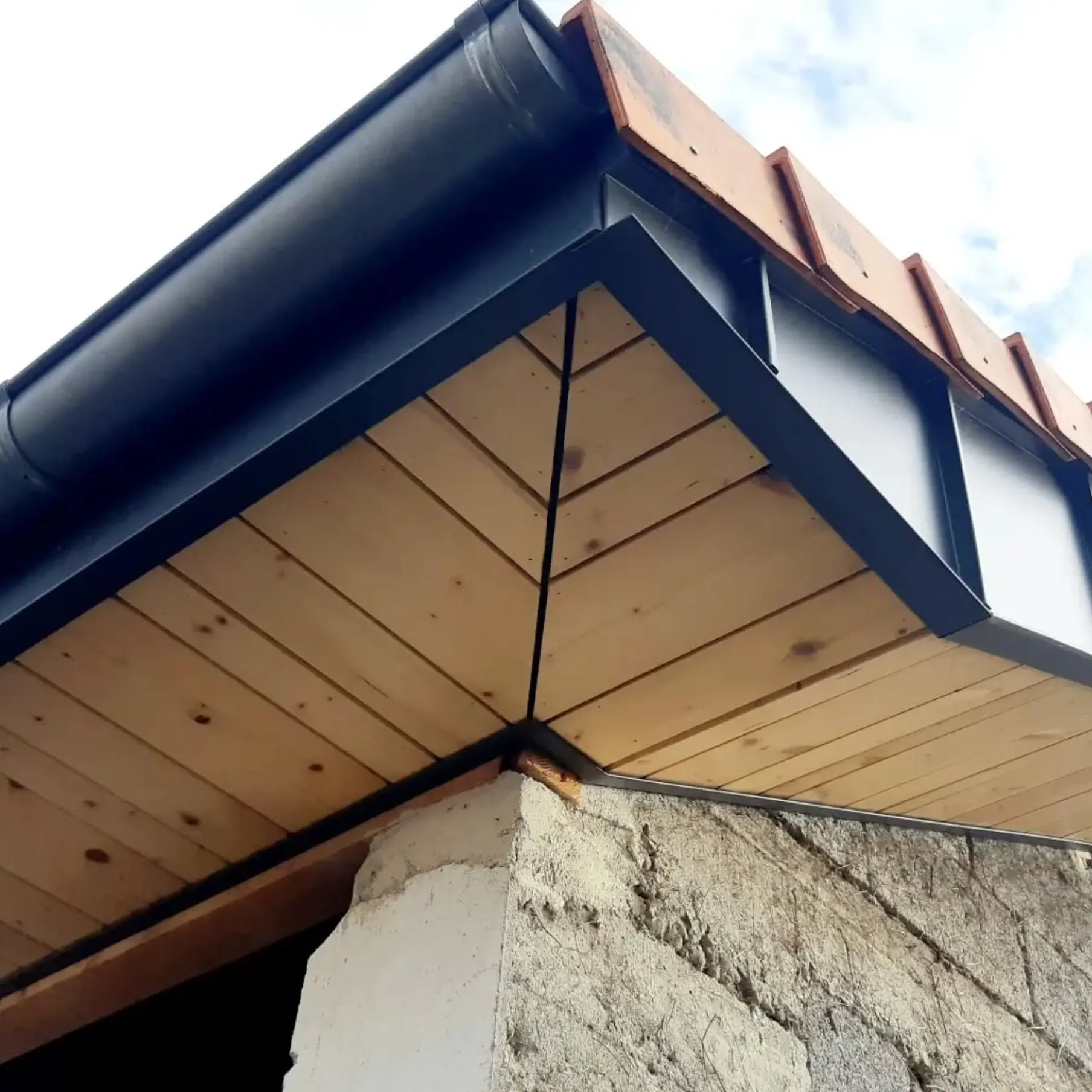 Installation de gouttières alu, entourage, chéneaux et descentes d’eau pluviale en zinc ou aluminium.